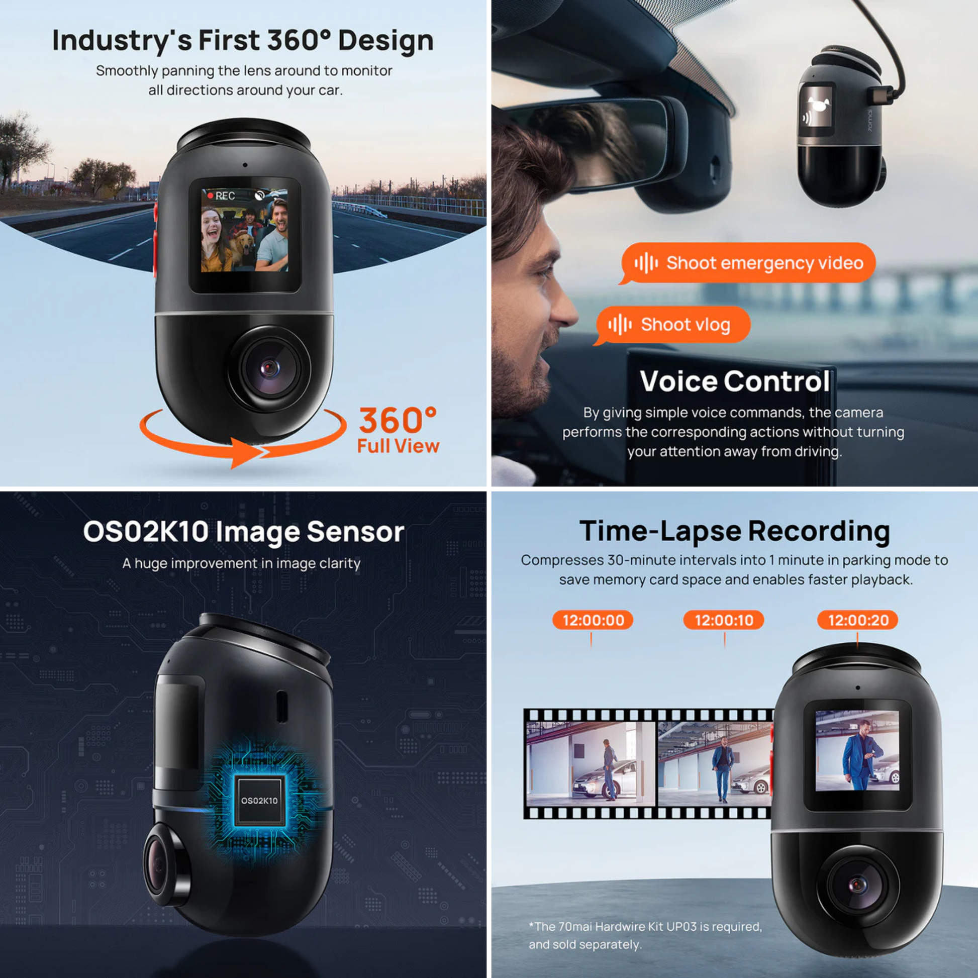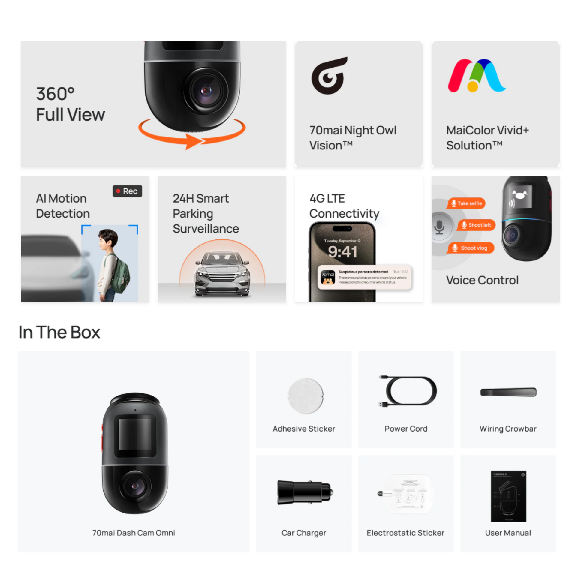 Supported Functions | - 70mai Night Owl Vision™ - MaiColor Vivid+ Solution™️ - 24H Smart Surveillance - AI Motion/Collision Detection - Loop Recording - Emergency Recording - Time-Lapse Recording - Share Video/Shoot Photo - Route Tracking - APP Control - Built-in GPS - ADAS - G Sensor - HDR - 3DNR - Voice Control |