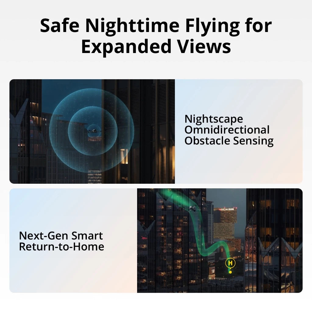 Safety Features | Nighttime obstacle avoidance Smart return-to-home Front-facing LiDAR Downward infrared time-of-flight sensors Six vision sensors |
