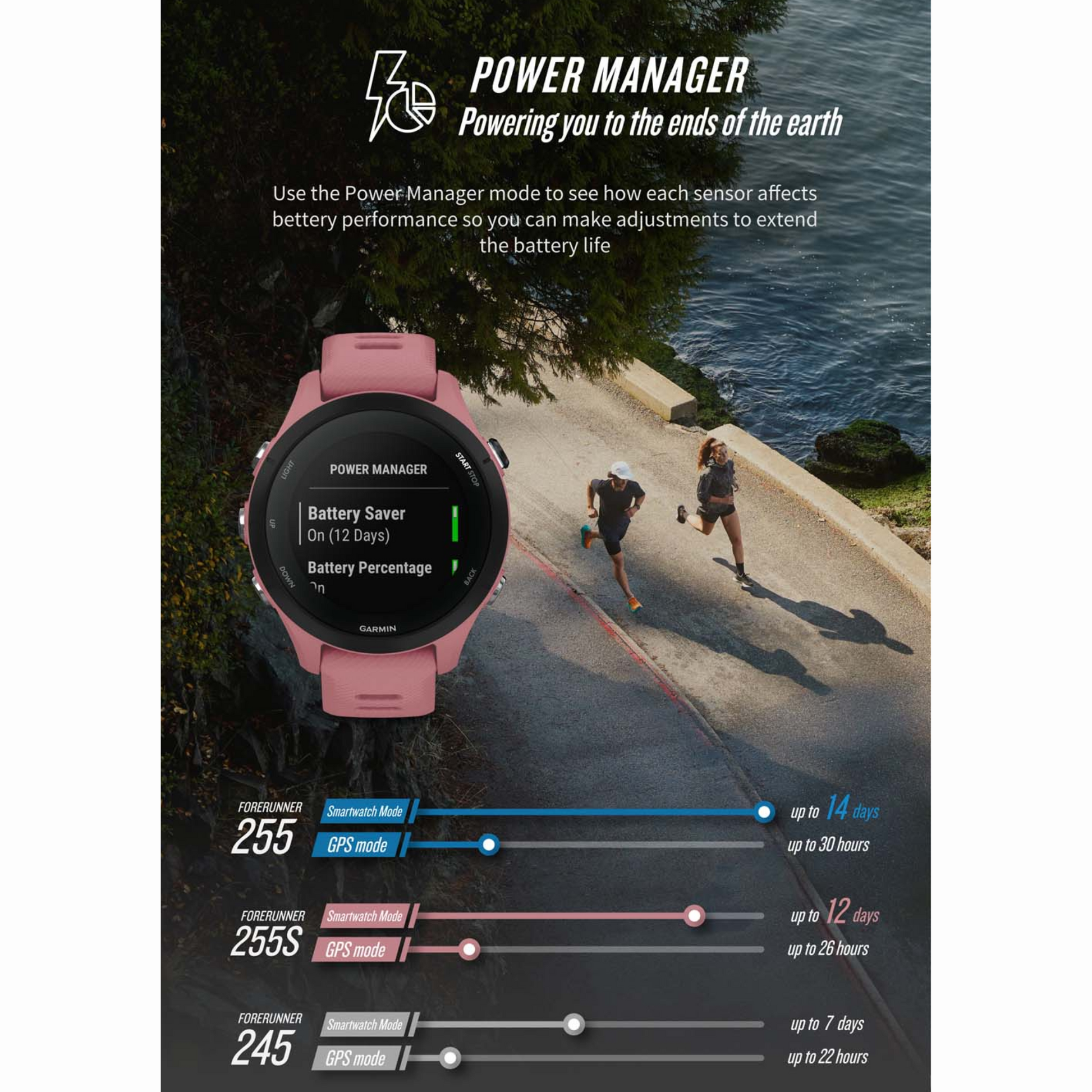 Battery Life | Smartwatch: Up to 14 days / GPS mode with music: Up to 6.5 hours |