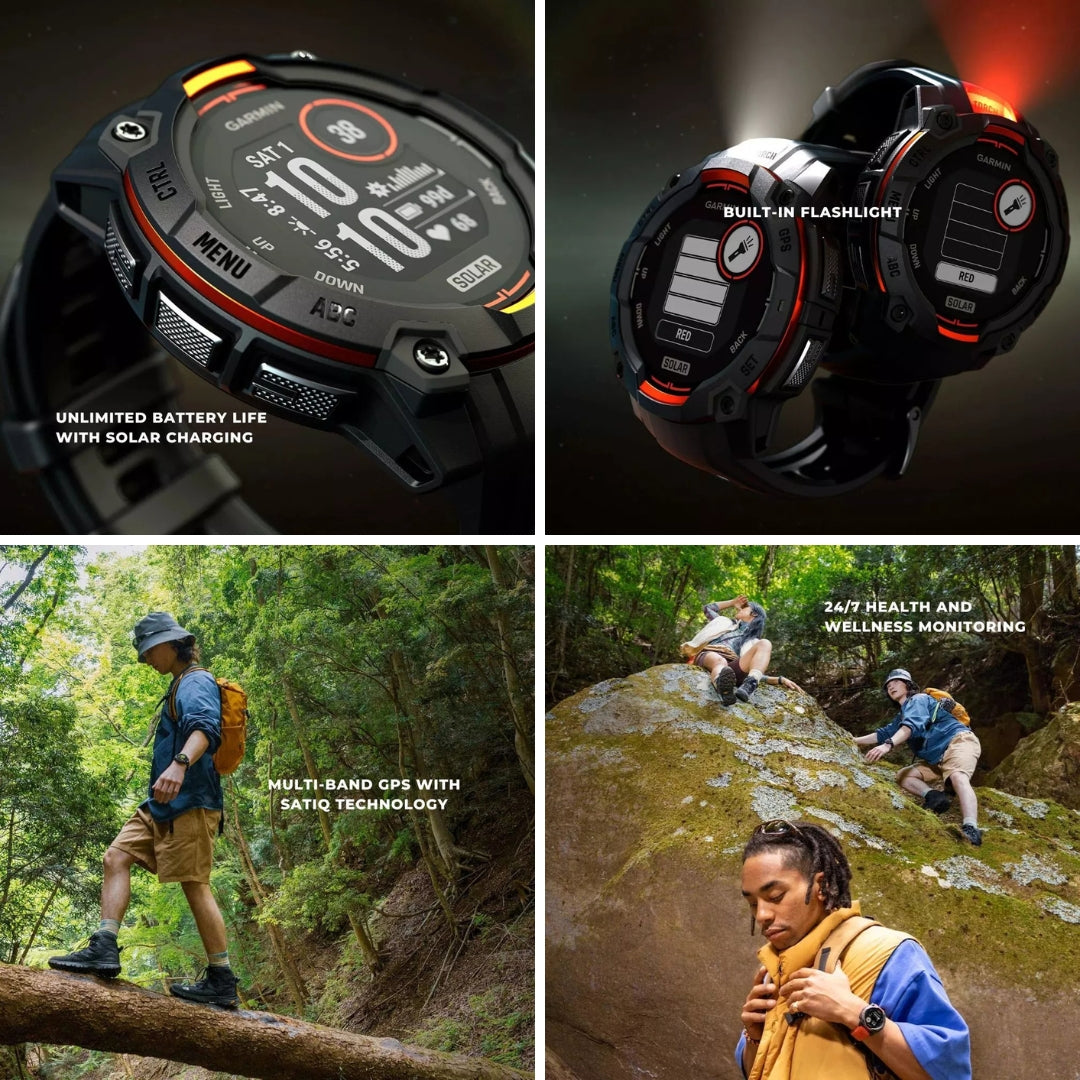 Battery life estimates with solar charging assume 3 hours of daily outdoor use in 50,000 lux sunlight conditions.