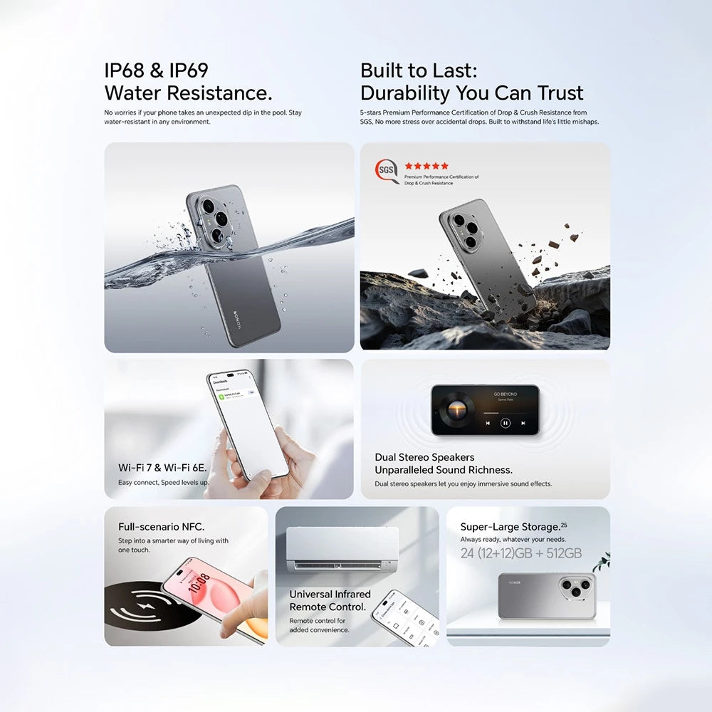 OS & Support | Android 15 with MagicOS 9.0; up to 6 years of OS and security updates |