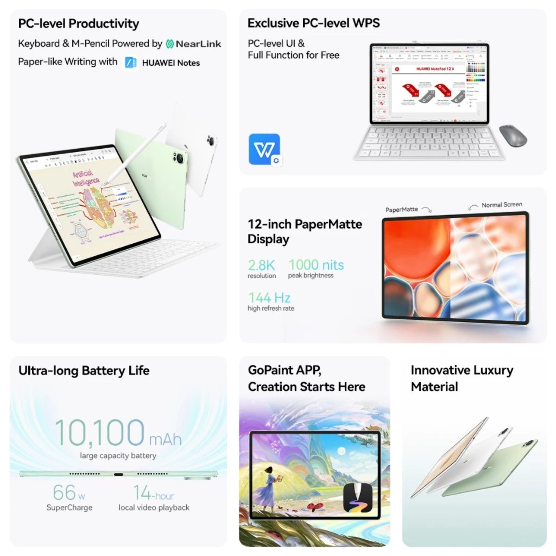 Display | 12-inch IPS LCD; 2800 x 1840 pixels; 280 ppi; 144Hz refresh rate; 1000 nits peak brightness; 88% screen-to-body ratio |
