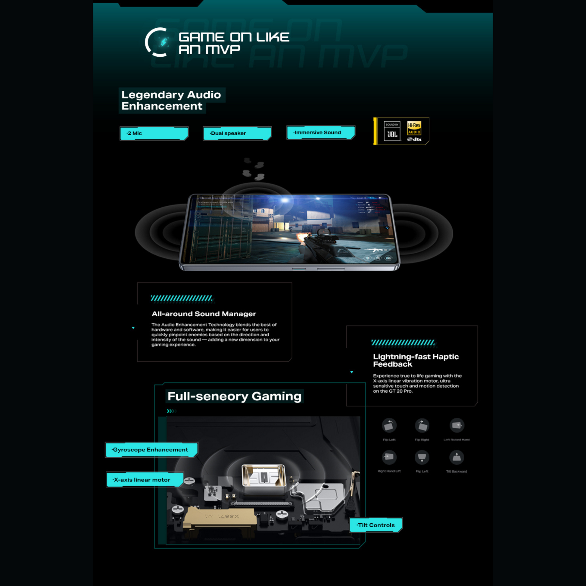 Audio | Stereo speakers tuned by JBL, no 3.5mm headphone jack |