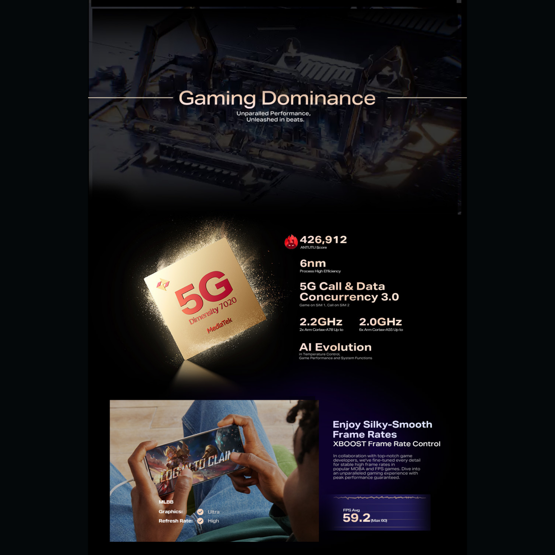 Processor | MediaTek Helio G99 (4G) | MediaTek D7020 (5G) |