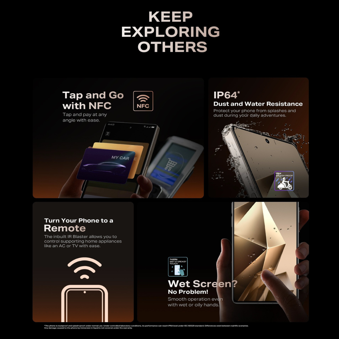 Connectivity | Dual nano-SIM, 5G (multi-band SA/NSA), Wi-Fi 6, Bluetooth 5.4, NFC, IR blaster, FM radio |