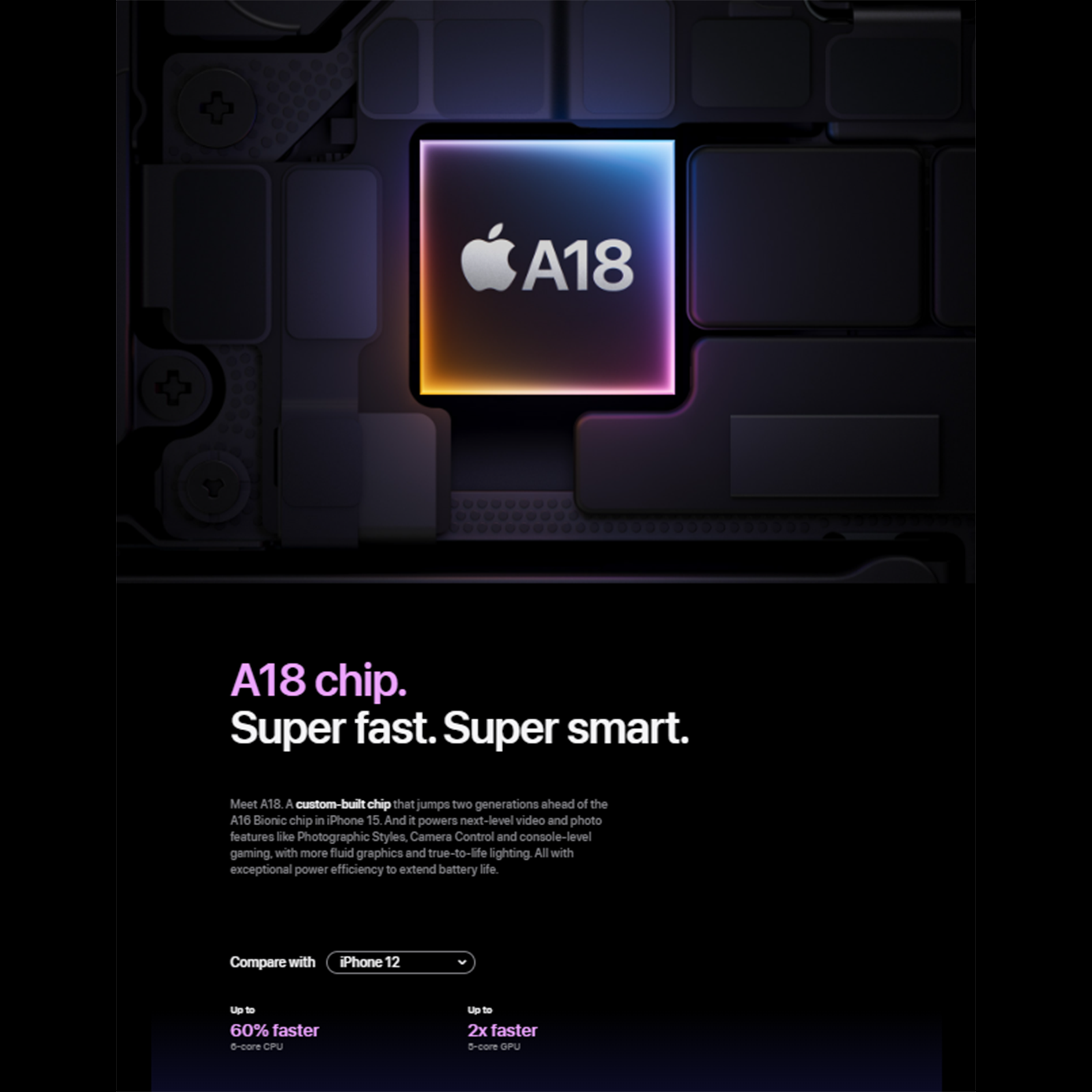 Camera Features | Super-high-resolution photos (24MP & 48MP), Focus & Depth Control, Macro photography, Spatial photos & videos, Latest-generation Photographic Styles |