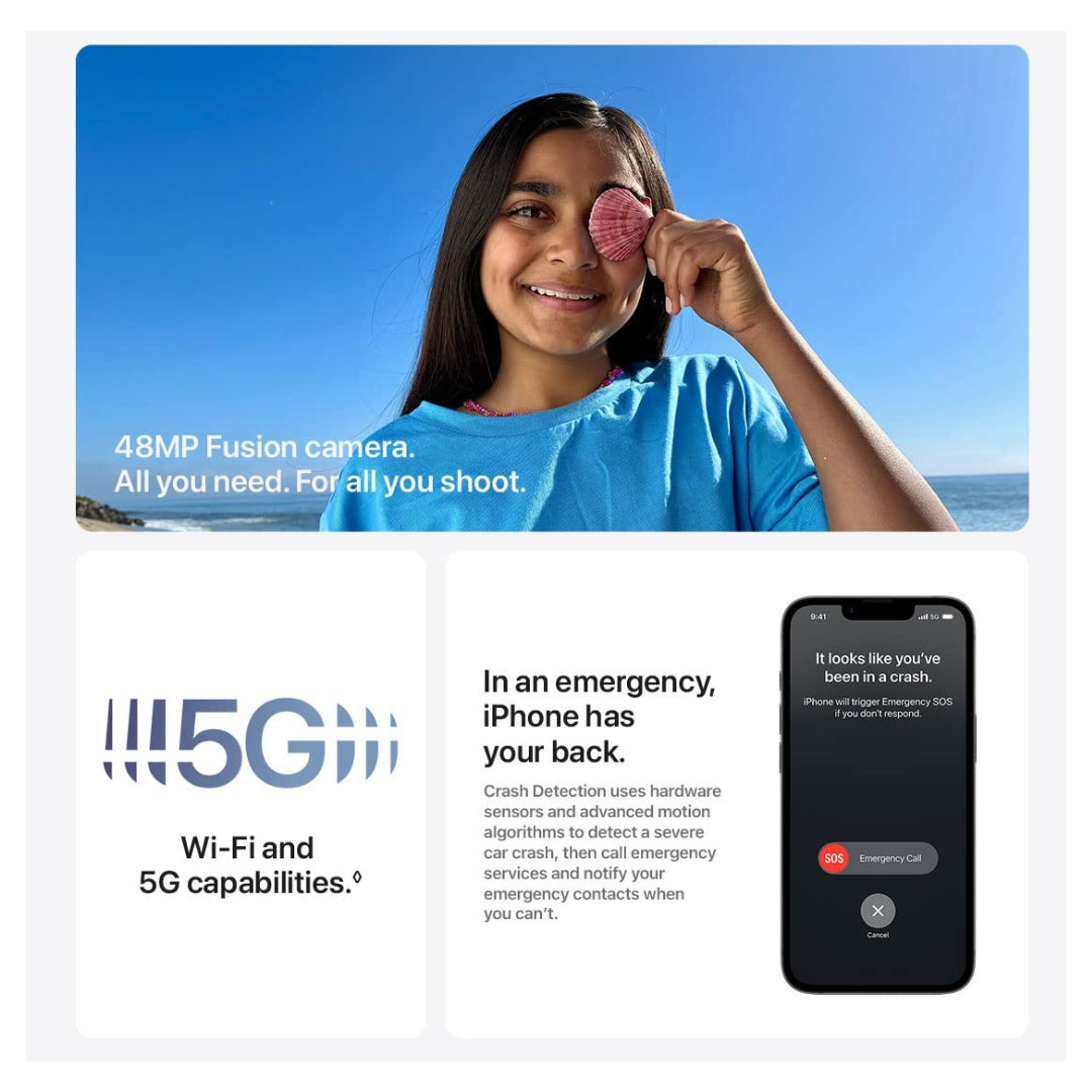 Additional Features | Face ID, Action Button replacing Mute switch, Apple Intelligence support, Emergency SOS, Messages and Find My via satellite |