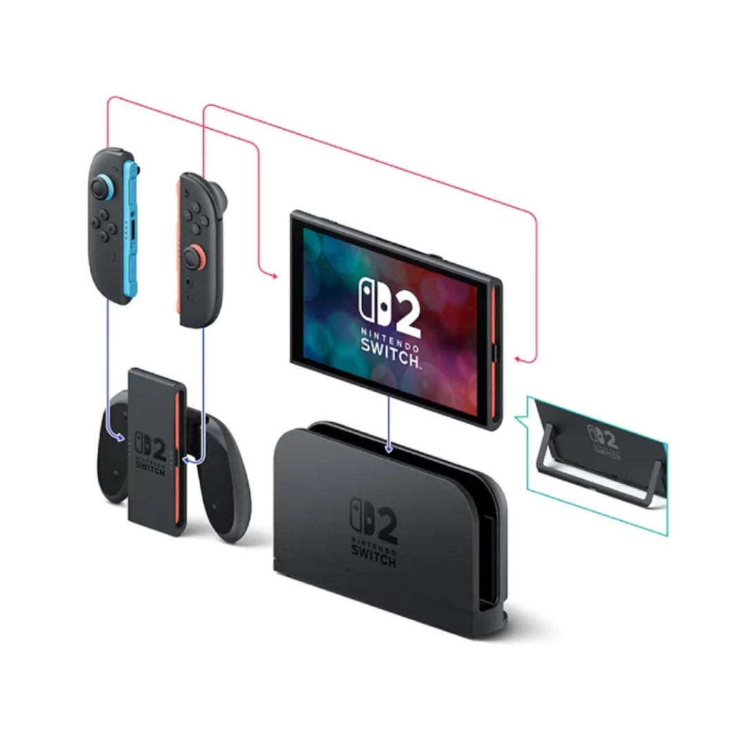 Joy‑Con 2 Controllers | Magnetic attachment; larger sticks & SL/SR buttons; “C” button for GameChat; mouse-mode sliding; ~20 h battery; no Hall-effect sticks |