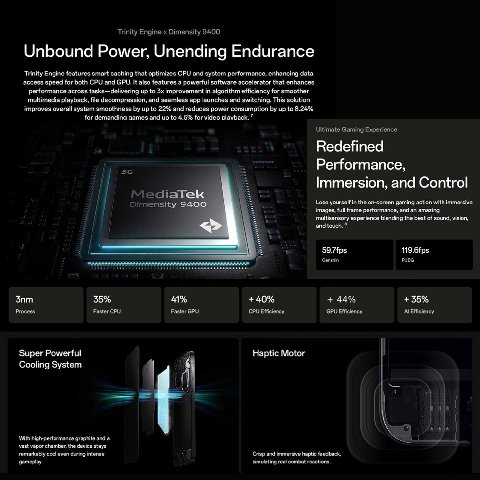 Processor | MediaTek Dimensity 9400 (3nm) |