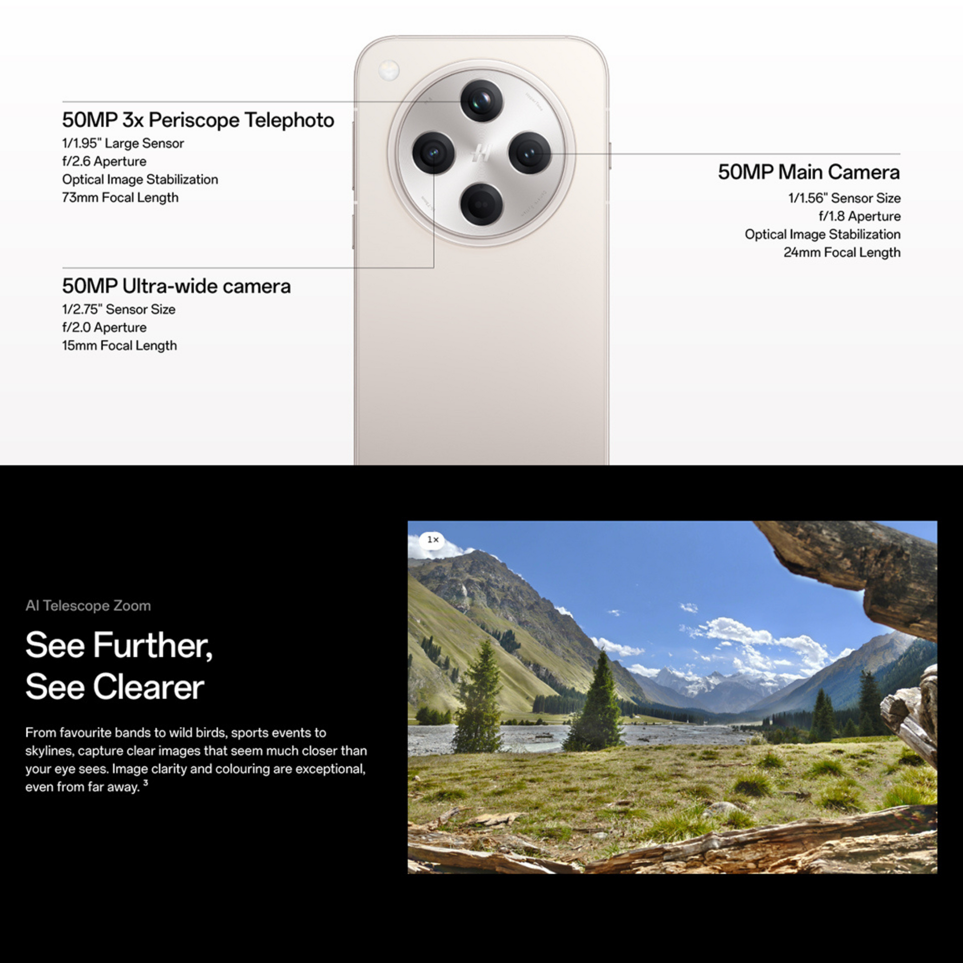 Rear Cameras | Triple: 50 MP (wide, OIS) + 50 MP (telephoto, 3x optical zoom, OIS) + 50 MP (ultrawide) |