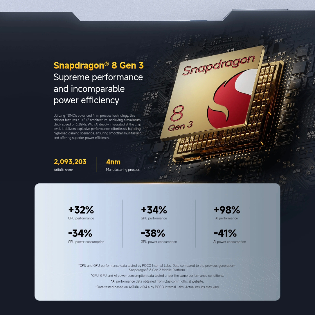 Processor | Qualcomm Snapdragon 8 Gen 3 (4 nm) |