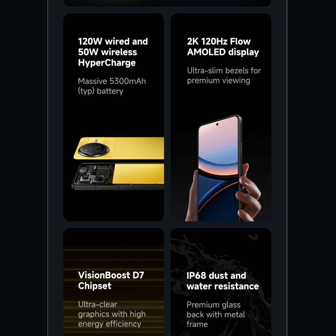 Display | 6.67-inch OLED, 1440 x 3200 pixels, 120Hz refresh rate, Dolby Vision, HDR10+, peak brightness up to 3200 nits |