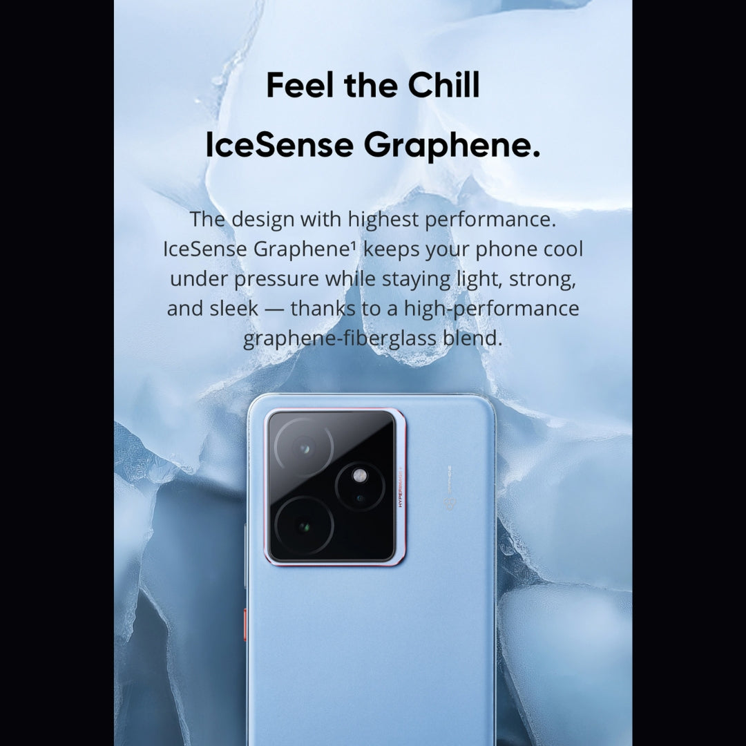 Build & Design | 162.42×76.13×8.3 mm; ~206 g; IceSense graphene rear; Corning Gorilla Glass 7i |