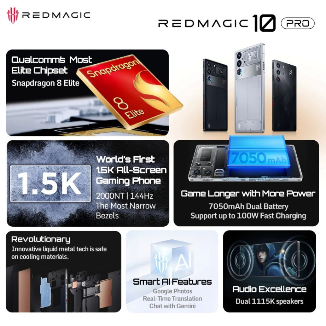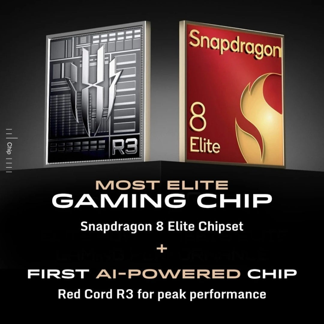 Platform (SoC) | Qualcomm Snapdragon 8 Elite (3 nm), Kryo–Oryon V2 (2×4.32 GHz + 6×3.53 GHz), Adreno 830, RedCore 3 Pro AI co‑processor (REDMAGIC (Malaysia)) |