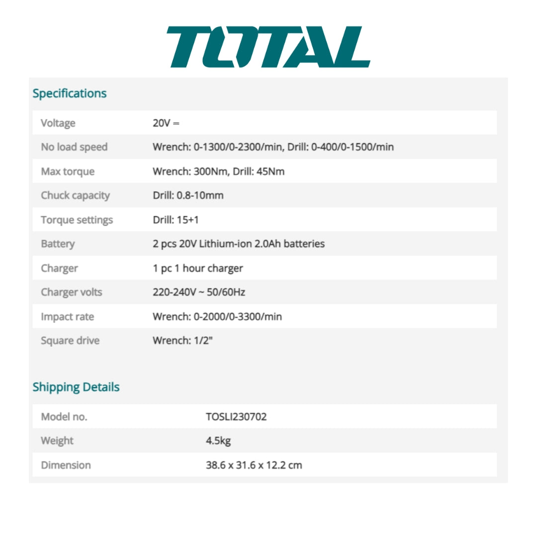 TOTAL Cordless Impact Wrench Combo