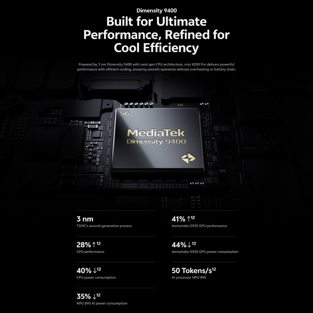 Platform (SoC) | MediaTek Dimensity 9400 (3 nm); Octa-core CPU, Immortalis‑G925 GPU |