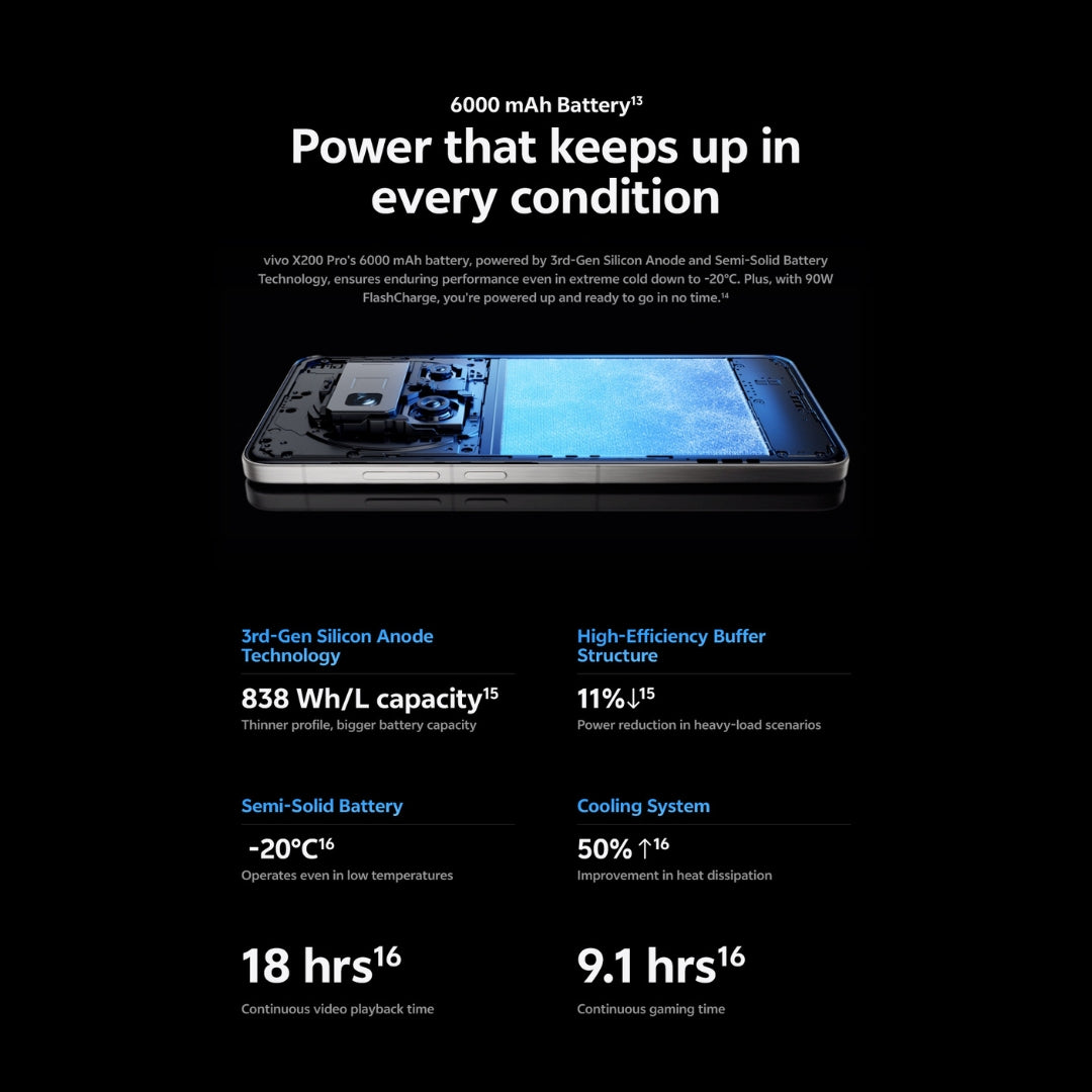 Battery | 6000 mAh (rated ~5865 mAh) single-cell Li-ion with CIPA 23.04 Wh |