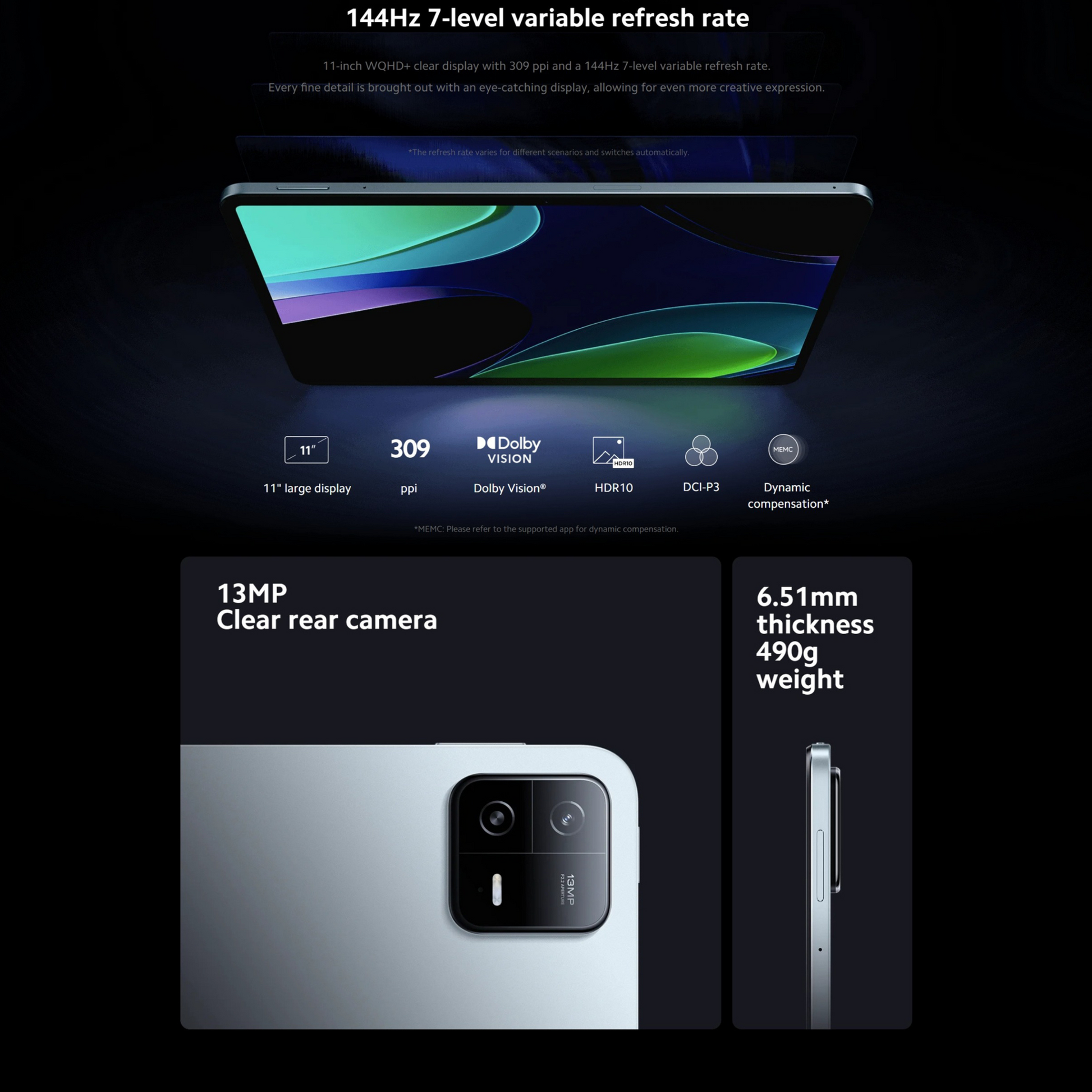 Display | 11-inch WQHD+ IPS LCD, 2880 x 1800 px, 144Hz, 16:10 ratio, 550 nits, HDR10+ |
